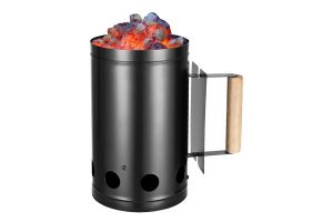 The Chimney Starter or Charcoal Chimney is a tool that is used to ignite either lump charcoal or charcoal briquettes. Chimney starter has a plate with several holes that are placed horizontally inside the cylinder about 3” (8cm) from the bottom. By using a chimney starter, you can fire briquettes easily in a safe way.